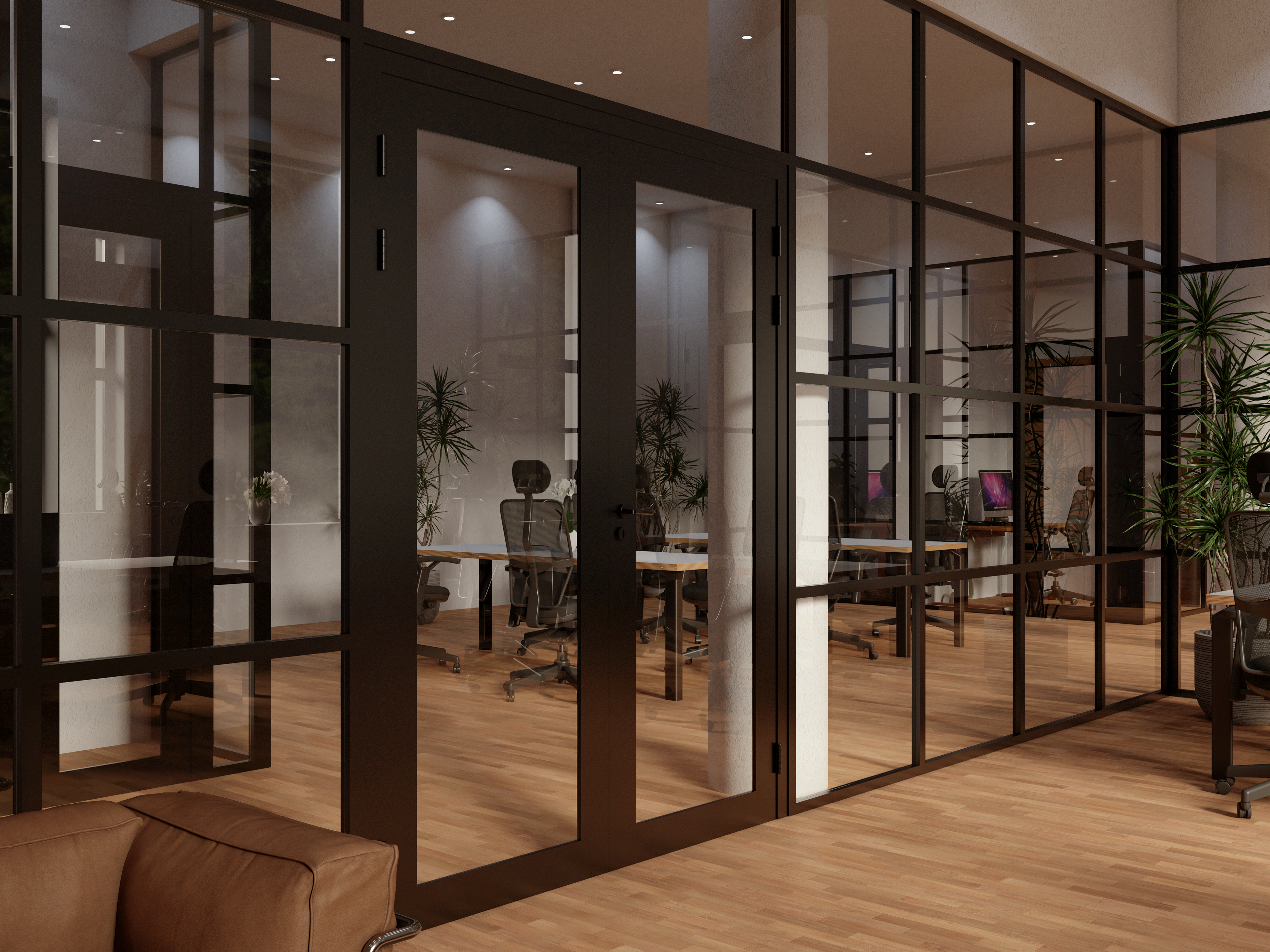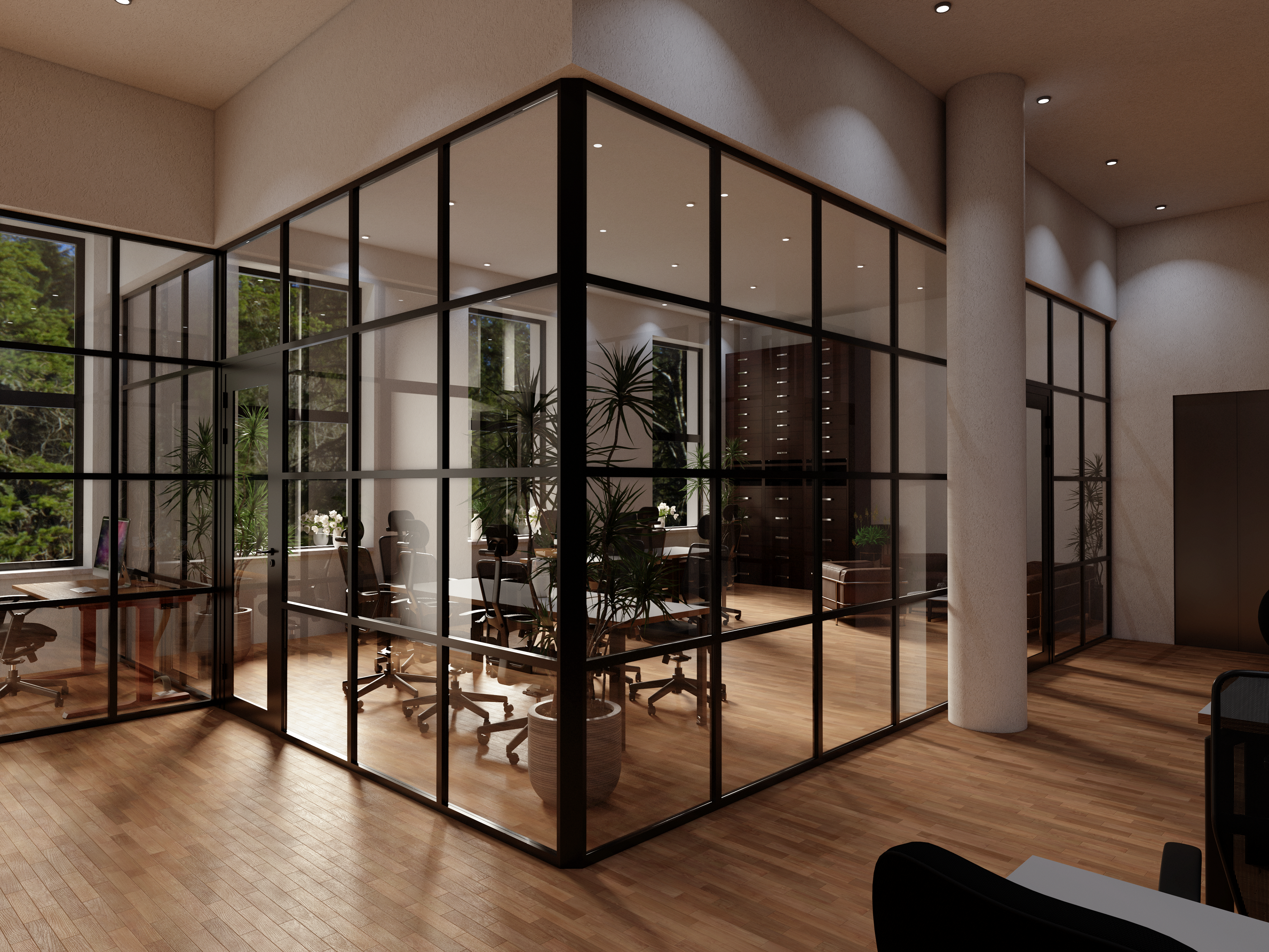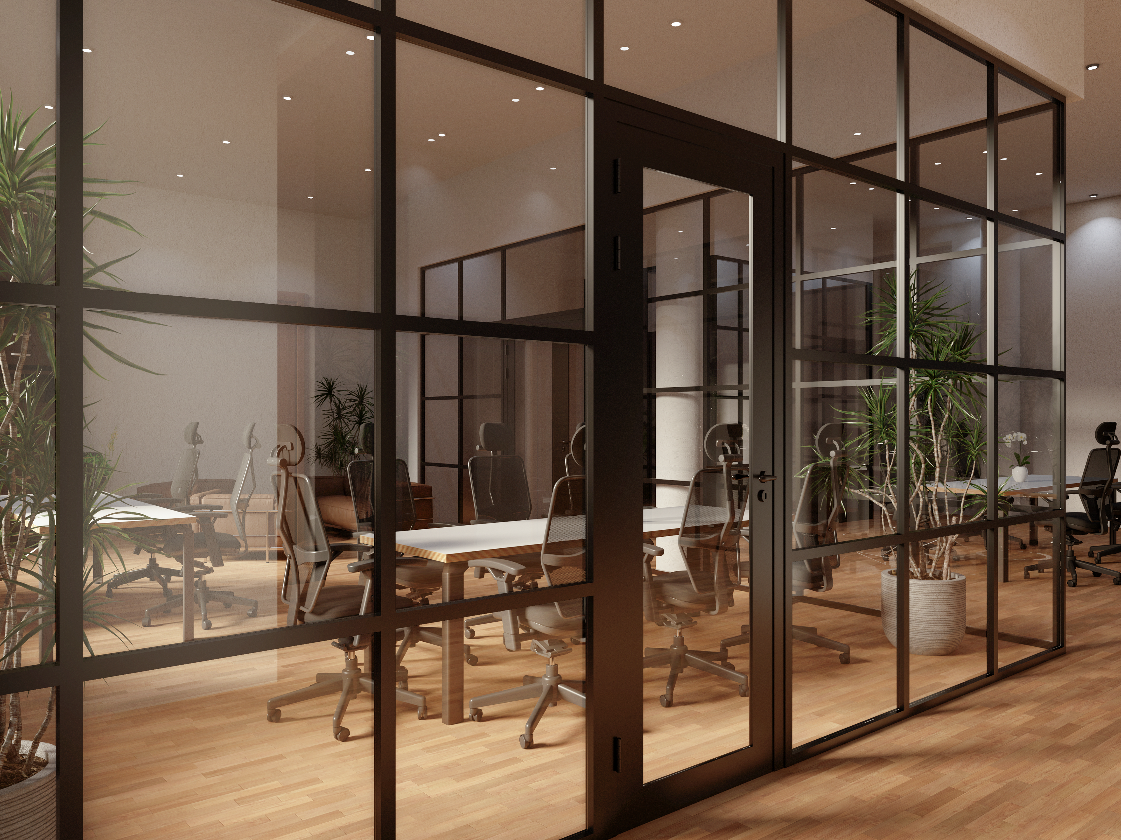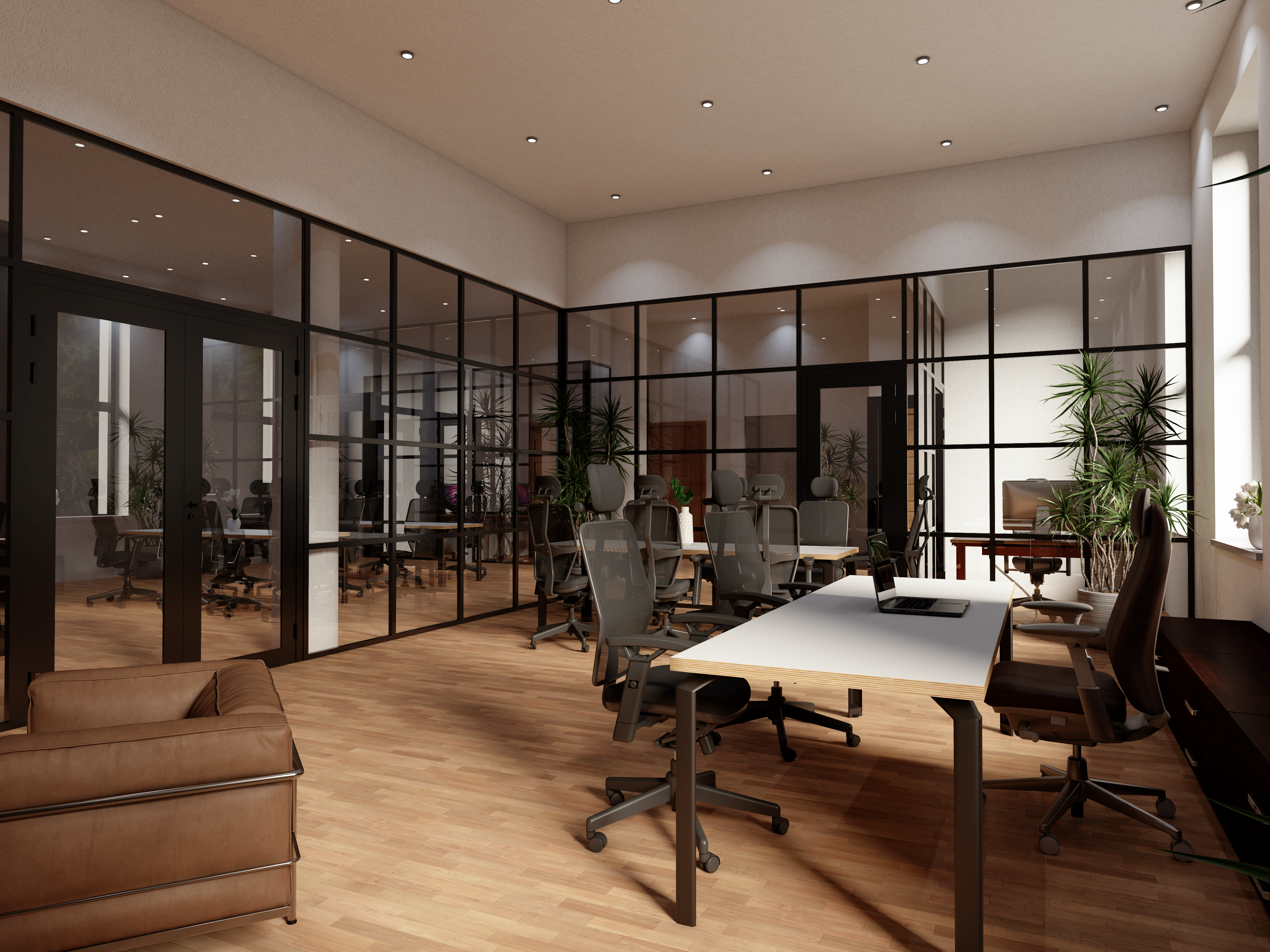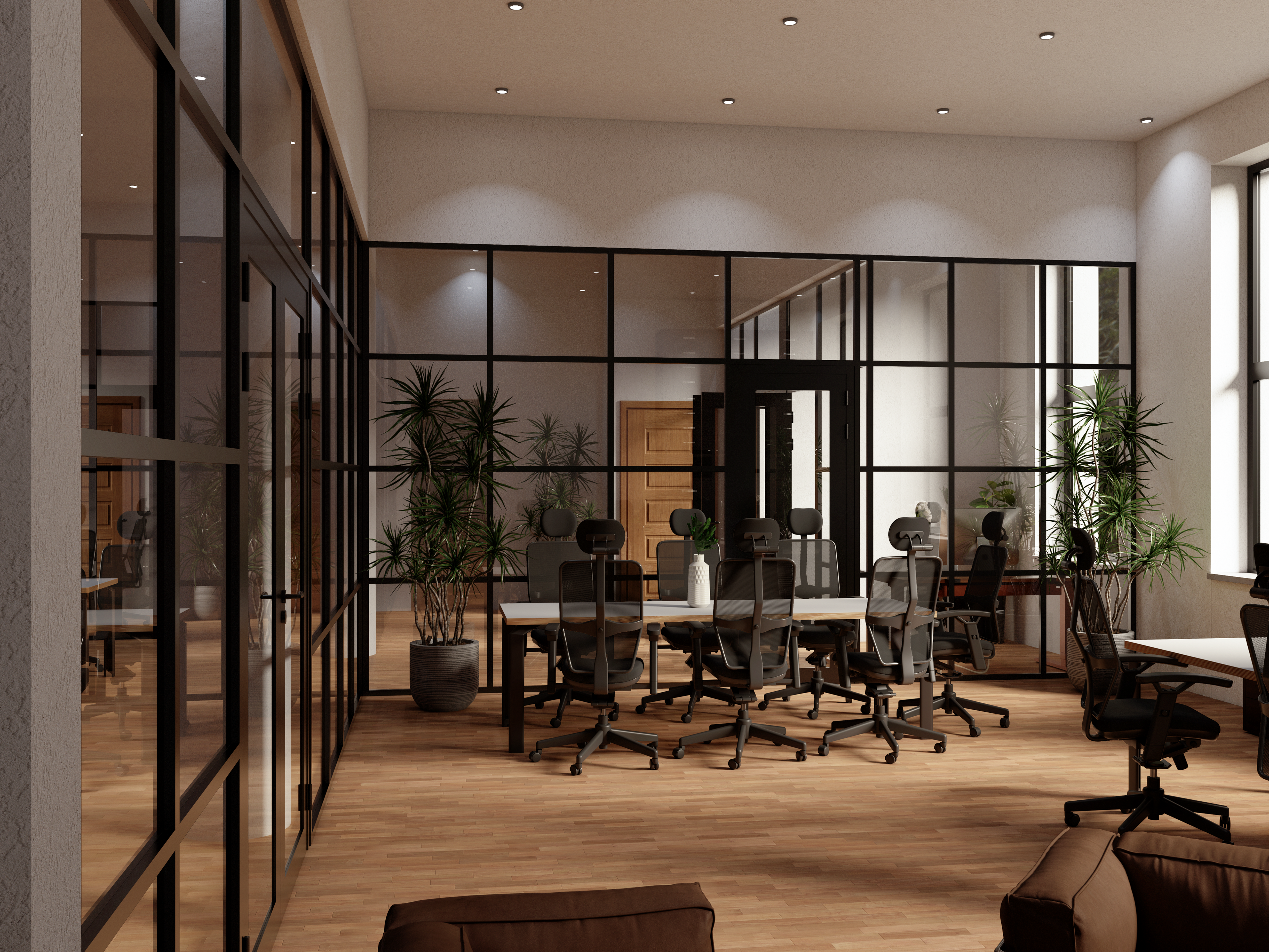 3d office interior design - Co-Work with glass partitions Inc