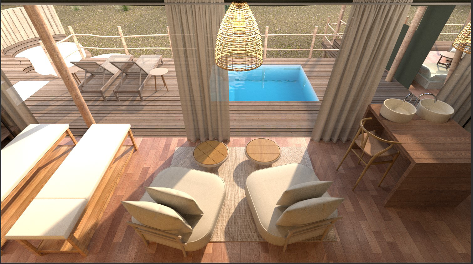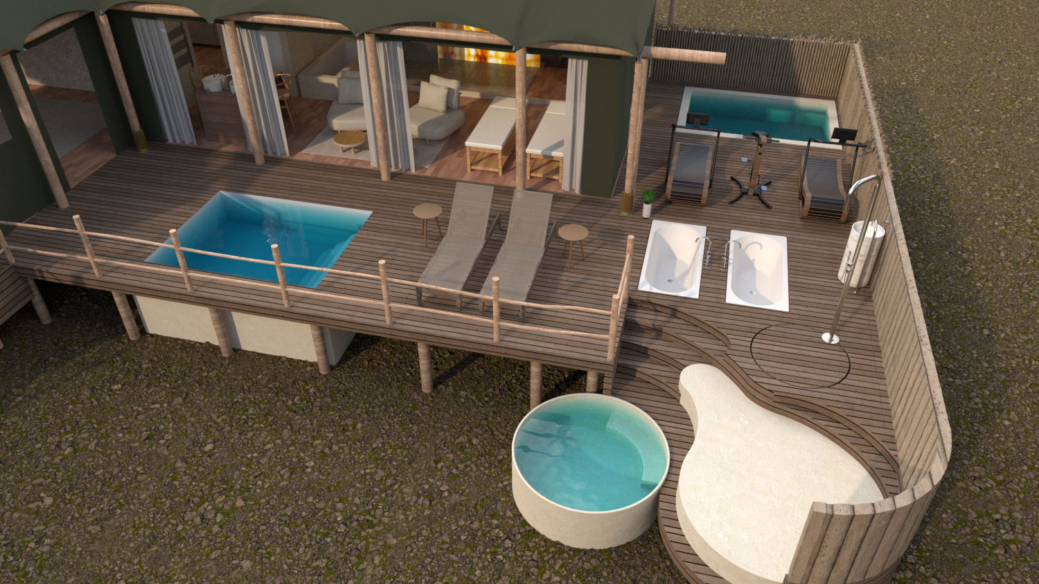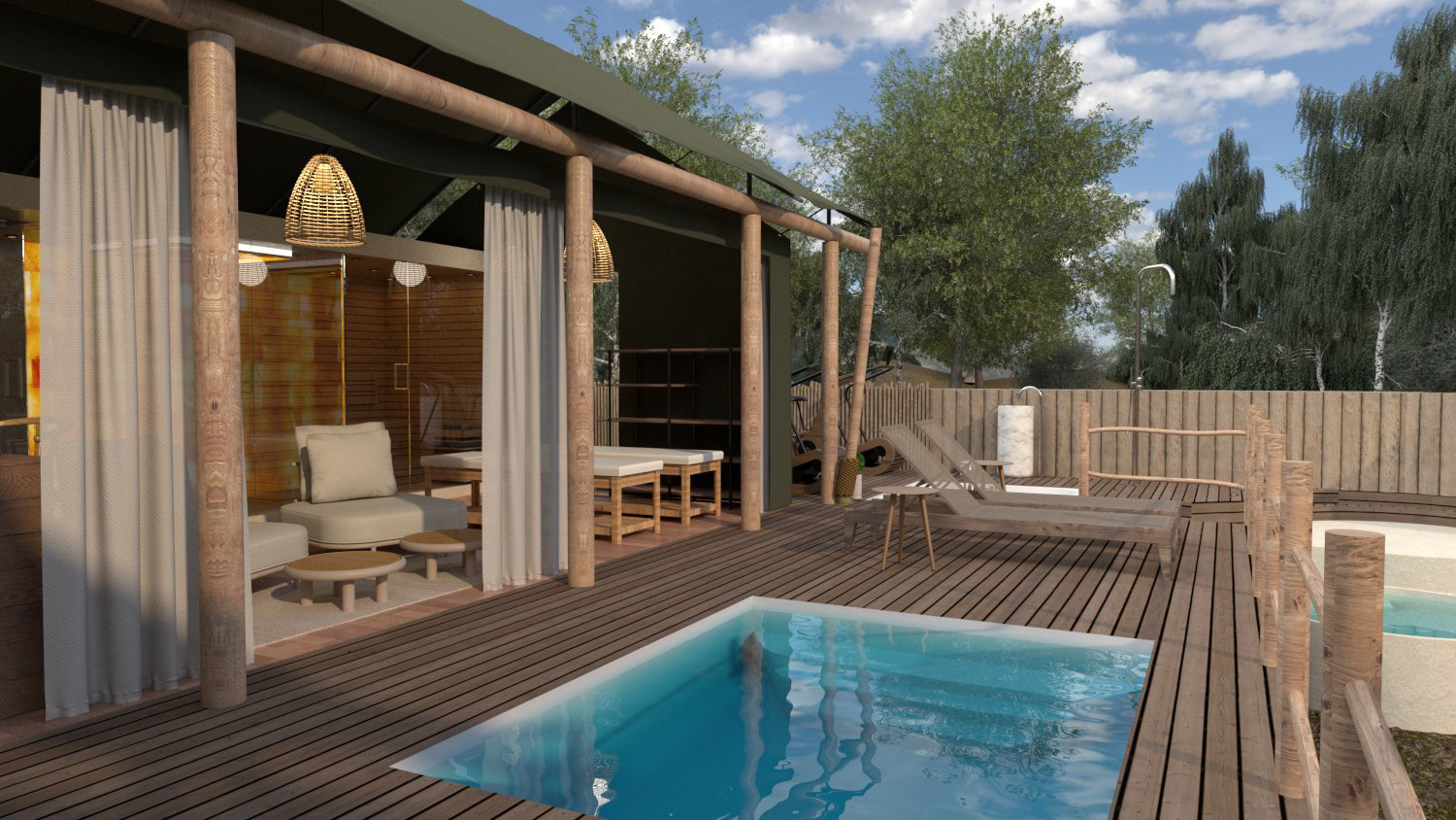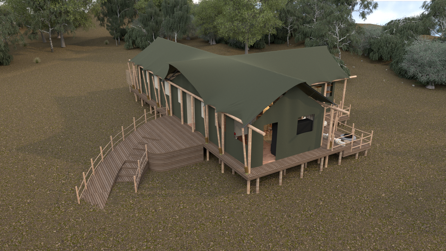 This luxury safari lodge project was developed for an eco-conscious resort in the heart of South Africa’s wilderness, aiming to provide a premium nature escape without compromising on design or comfort. The architectural form takes inspiration from African safari tent traditions, upgraded with modern hospitality features like ensuite spas, outdoor baths, glass facades, and open-air relaxation decks. The spatial layout promotes both seclusion and openness, with a focus on natural views and material tactility. Lighting scenarios were crafted to reflect sunset mood and golden hour ambience, ideal for presentation visuals in resort branding, investment pitches, or guest brochures. This visualization offers a holistic representation of eco-luxury living, built with technical precision and artistic storytelling.